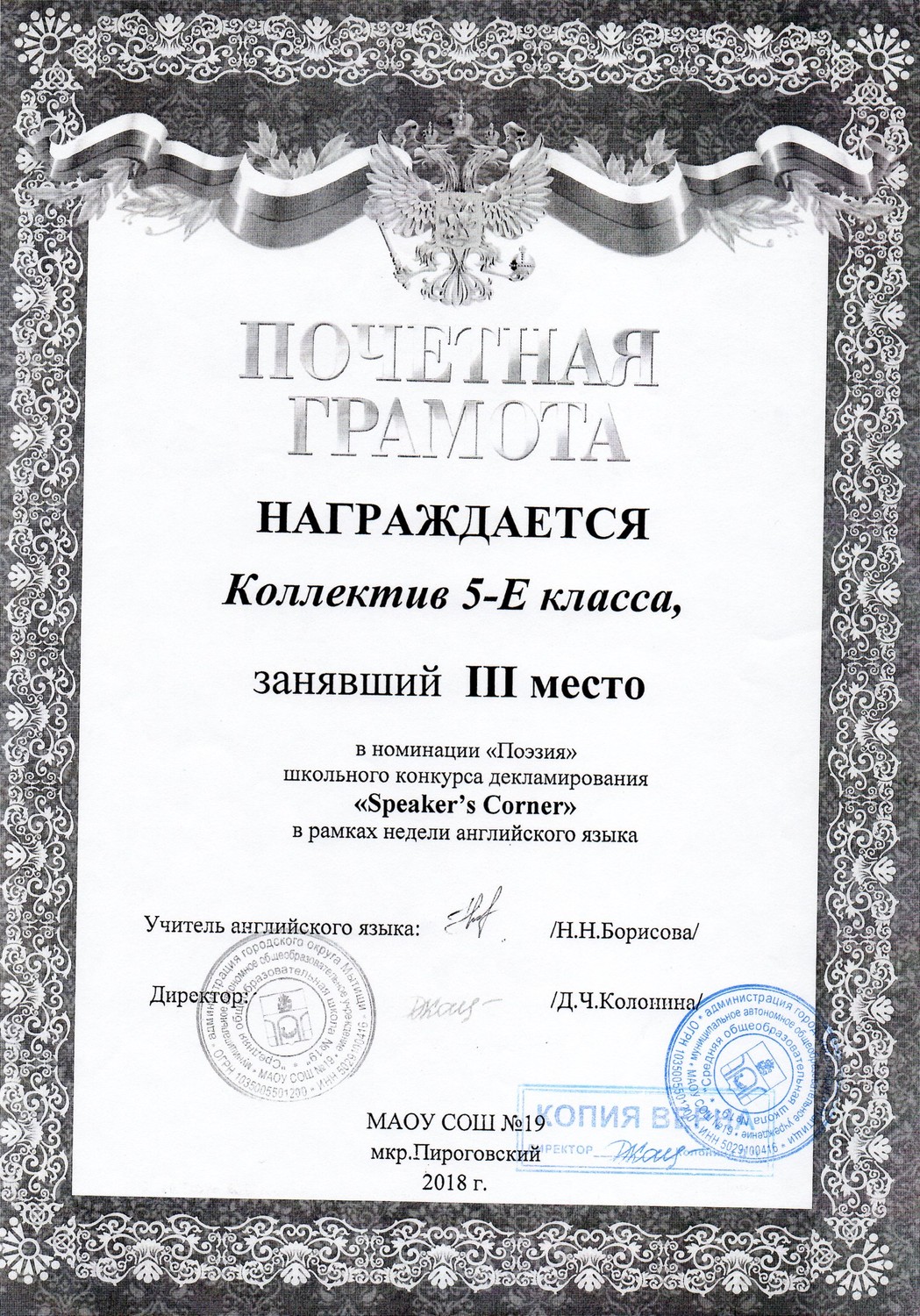 Школьный конкурс устных выступлений на английском языке в номинации "Поэзия" в рамках школьной декады английского языка.