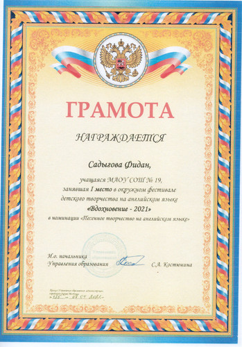 Окружной фестиваль детского творчества на английском языке "Вдохновение-2021"