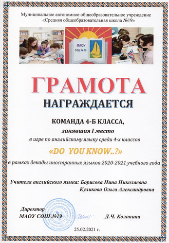 «DO YOU KNOW..?» рамках декады иностранных языков 2020-2021 учебного года