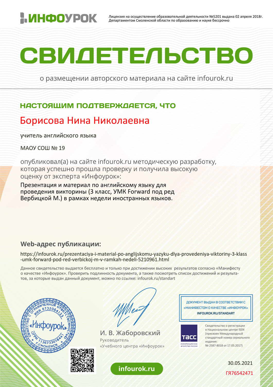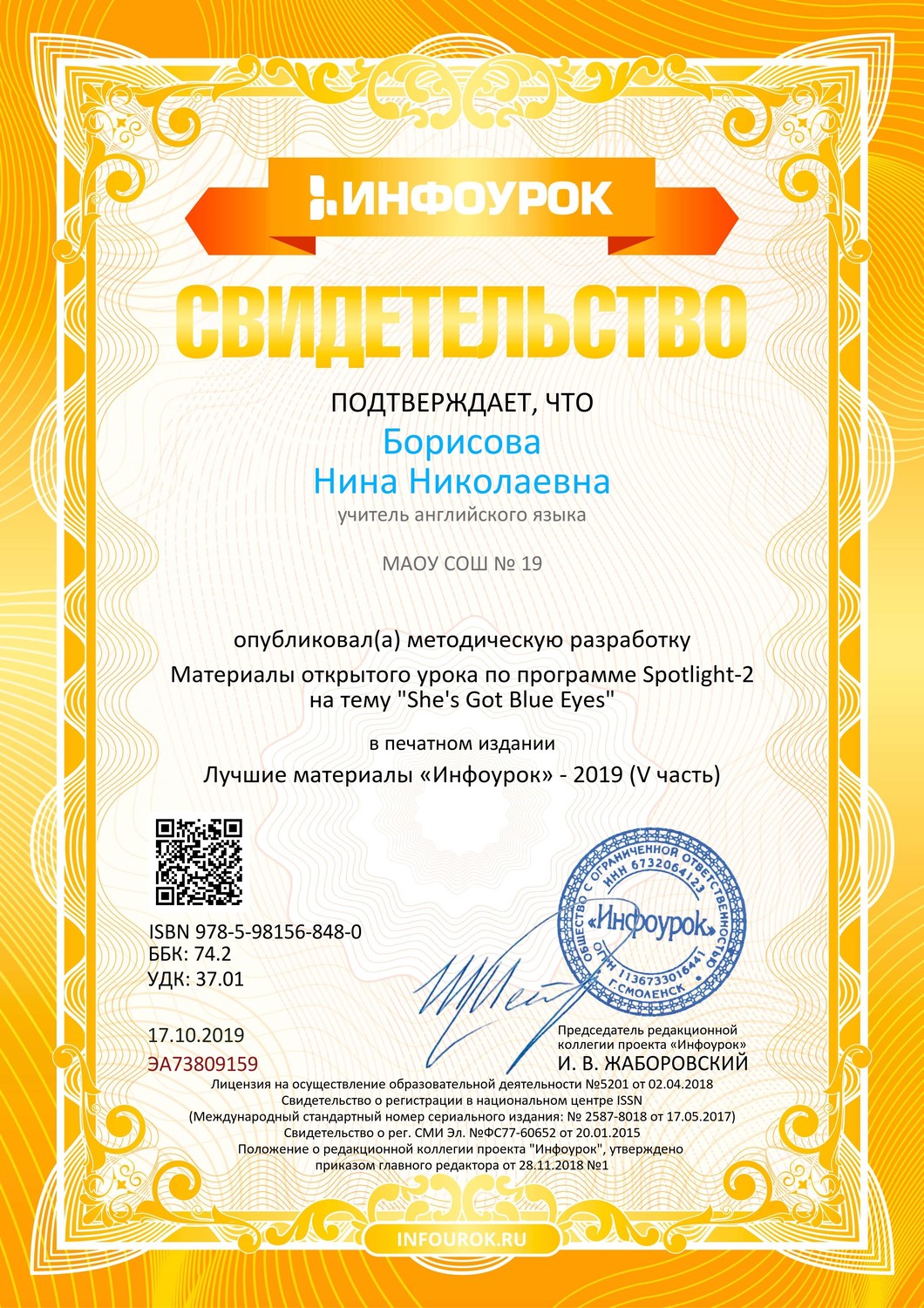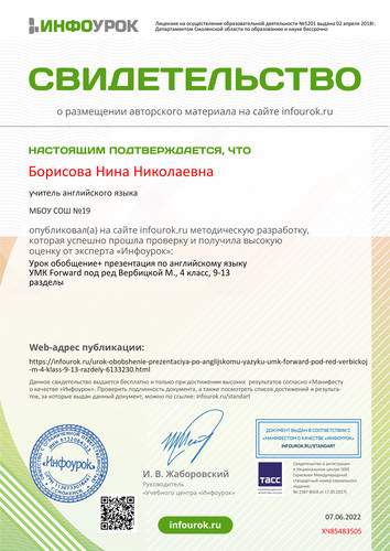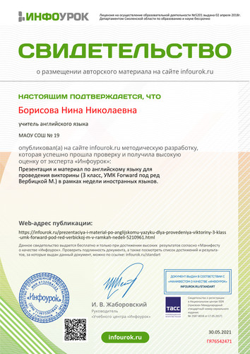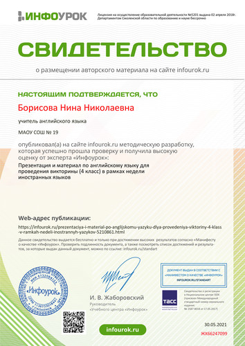 Сайт учителя английского языка МБОУ СОШ №19 Борисовой Нины Николаевны